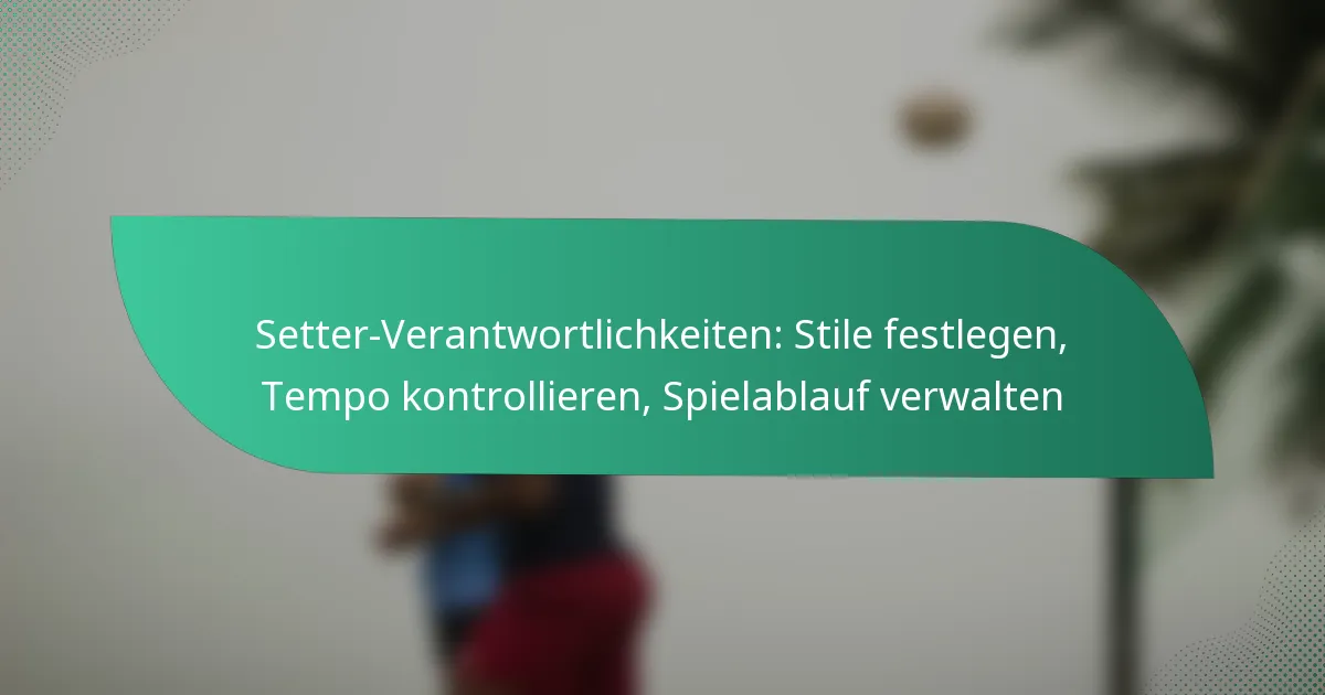 Setter können verschiedene Techniken zur Tempo-Kontrolle nutzen, um das Spieltempo zu beeinflussen. Effektives Tempo-Management ermöglicht es einem Team, den Spielfluss entweder zu beschleunigen oder zu verlangsamen, was die Gesamtleistung und die Umsetzung der Strategie beeinflusst.